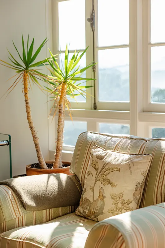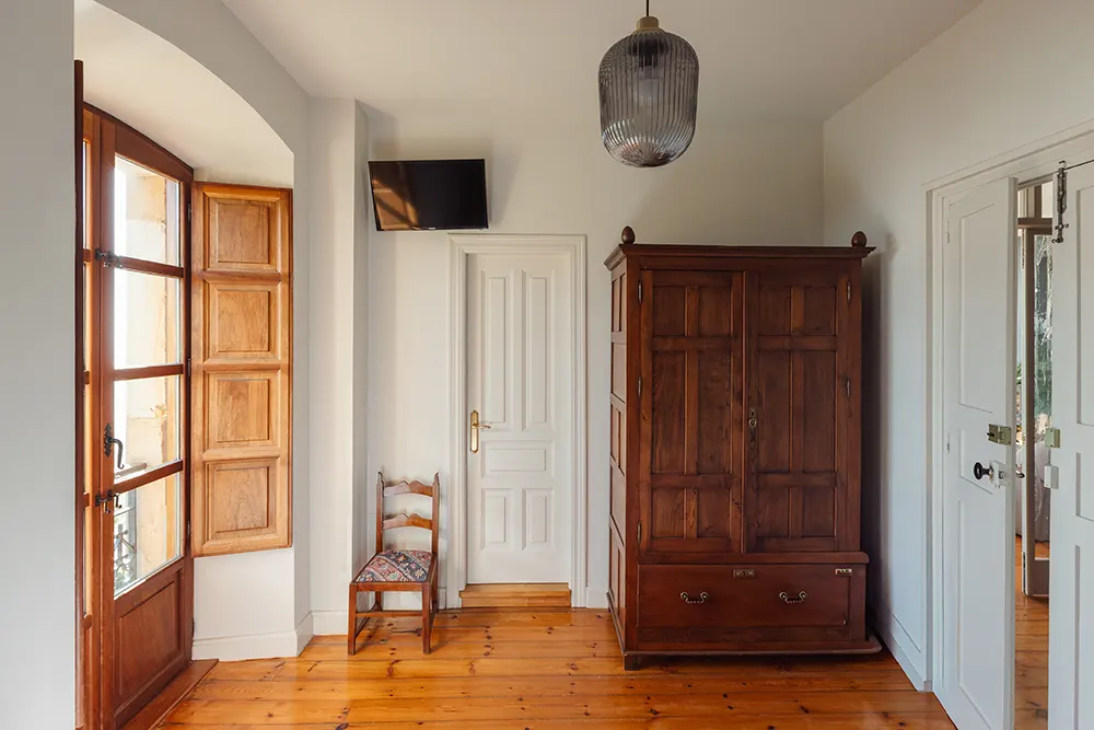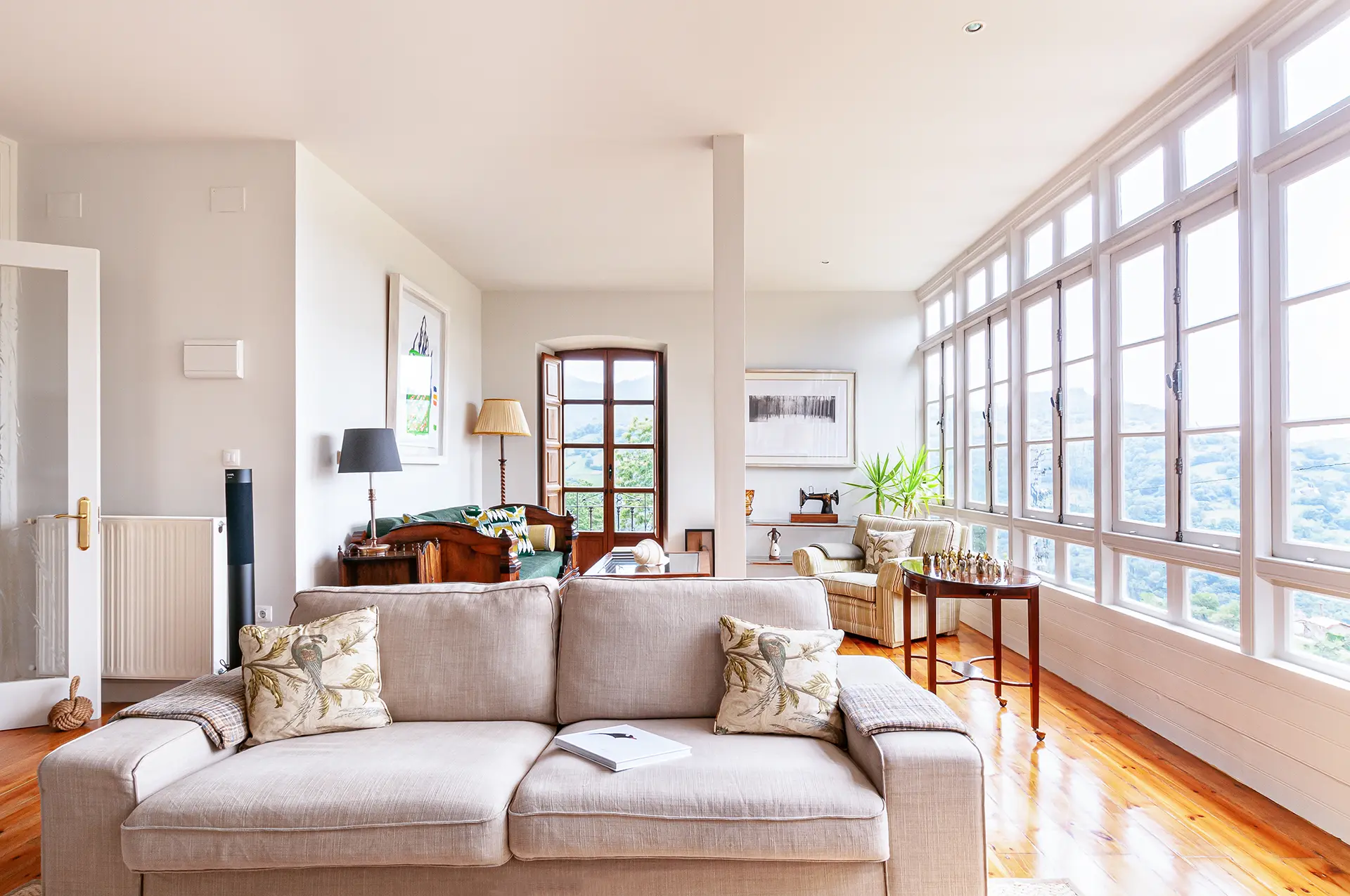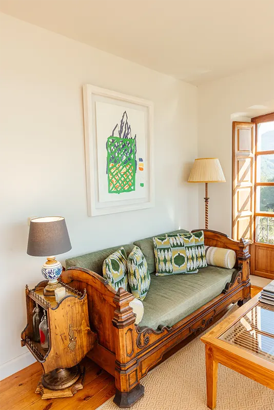Si hay un espacio que verdaderamente enamora, es su salón-galería, uno de los espacios más especiales del hotel: un rincón donde la luz, la calma y el paisaje se entrelazan para crear un ambiente único. Gracias a sus amplios ventanales, la galería se convierte en un auténtico mirador desde el que se despliega un escenario natural difícil de olvidar.